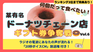 何個だって食べたい! 某有名ドーナツチェーン店ギフト券争奪戦!Vol.6 | donut06 | NO | NO | 0 | 0 | 9,S,A,B,C | 3 | 2026/02/23 18:00:00 | 2026/03/18 21:59:59 | 41734 | 904 | NO | NO | NO | YES | 2026/02/03 16:01:29 | 開催中 | レベル (quest) | 25 | |||