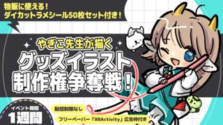 やぎこ先生が描く、グッズイラスト制作権争奪戦!vol.1 | yagiko | NO | NO | 0 | 0 | 9,S,A,B,C | 3 | 2026/04/13 18:00:00 | 2026/05/03 21:59:59 | 42163 | 904 | NO | NO | NO | YES | 2026/04/14 13:48:11 | 開催中 | レベル (quest) | 25 | |||