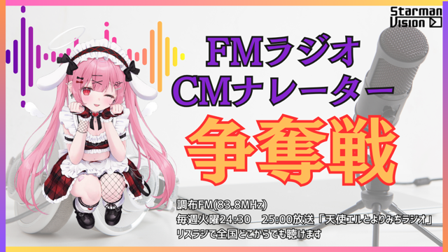 「天使エルとよりみちラジオ」CMナレーター争奪戦(2025年12月放送) | eruradio_cmnarrator2025dec | Target:AllLivers | レベル | 44 |