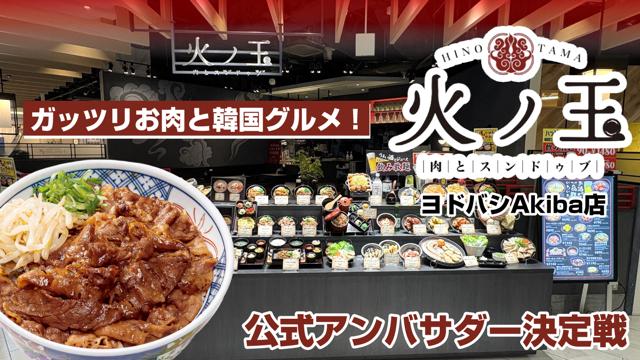 ガッツリお肉と韓国グルメの専門店『火ノ玉』ヨドバシAkiba店 公式アンバサダー決定戦 | hinotama | Target:AllLivers | レベル | 2 |