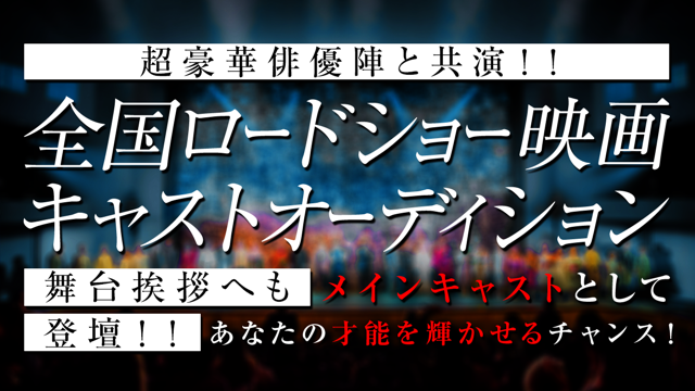 超豪華俳優陣と共演!!全国ロードショー映画キャストオーディション | movie_cast | AllLivers | 3日以上 | レベル | 18 |