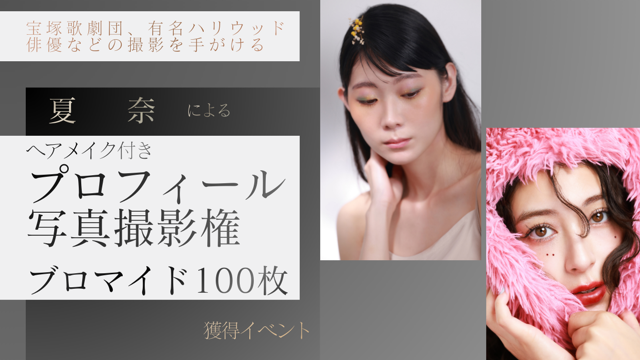 人気フォトグラファー夏奈による『ヘアメイク付きプロフィール写真撮影』獲得イベント! | natsunaphoto | AllLivers | 3日以上 | レベル | 79 |
